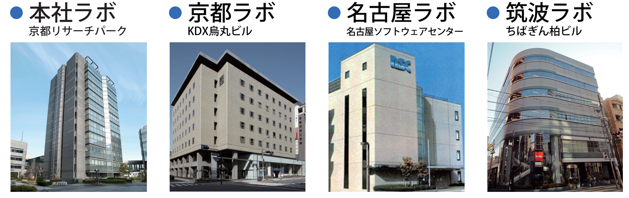 本社ラボ、京都、広島、京阪奈、名古屋、筑波、横浜、東京に開発ラボを設置。 お客様のいらっしゃる所にラボを設け、そこを拠点としてお客様の研究開発を支援します。 本社ラボには全社支援スタッフがおり本社機能があります。 各ラボは種々のお客様にお応えするために対等、同等としています。 住所等詳細はアクセスを参照ください。