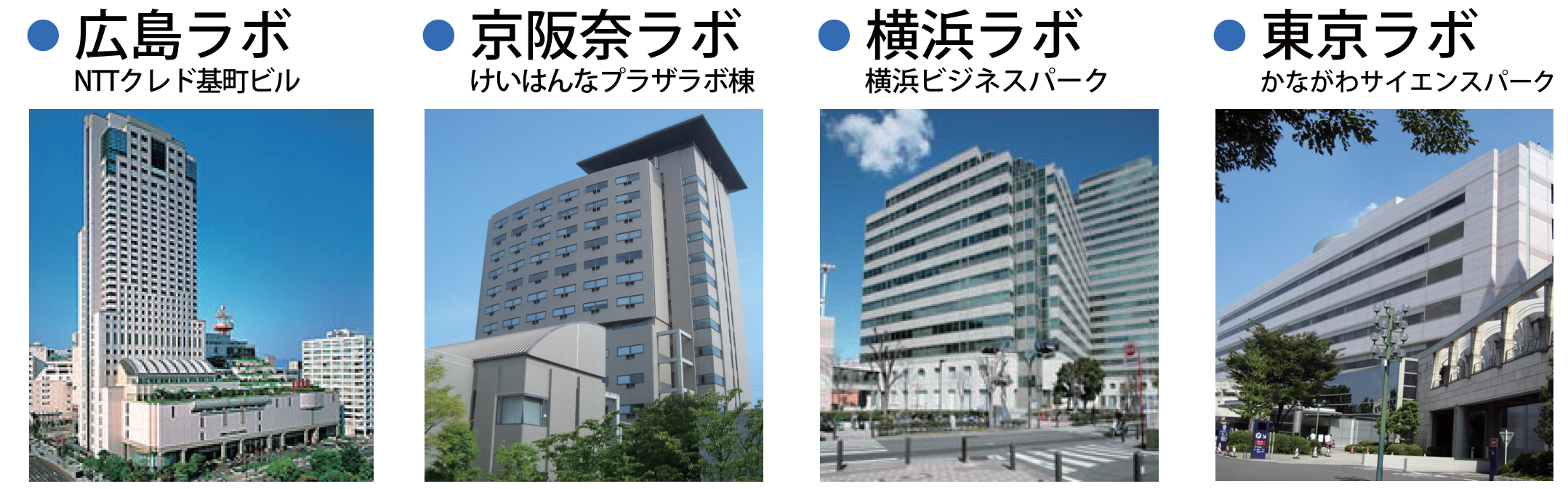 本社ラボ、京都、広島、京阪奈、名古屋、筑波、横浜、東京に開発ラボを設置。 お客様のいらっしゃる所にラボを設け、そこを拠点としてお客様の研究開発を支援します。 本社ラボには全社支援スタッフがおり本社機能があります。 各ラボは種々のお客様にお応えするために対等、同等としています。 住所等詳細はアクセスを参照ください。