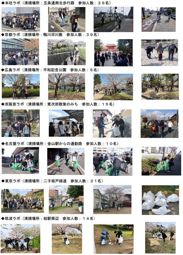とめ研究所では、創業記念日である4月7日を特別休暇としています。 2024年度より、創業記念日休暇当日に、社会(地域)貢献活動の一環として、 社員が各ラボ単位でラボのある地域の清掃活動を実施しています。